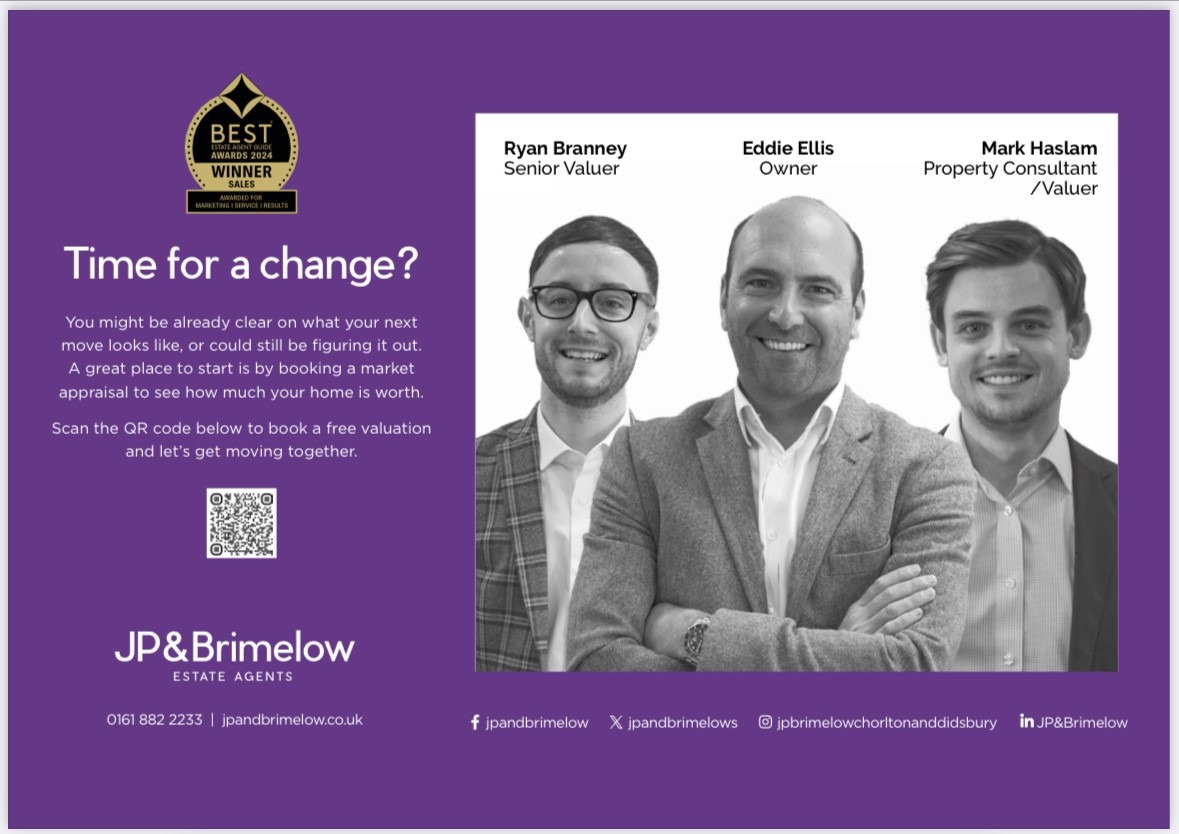 Call 0161 882 2233, to get in touch with the award-winning JP & Brimelow Chorlton & Didsbury Ltd team that can assist you with booking a market appraisal.