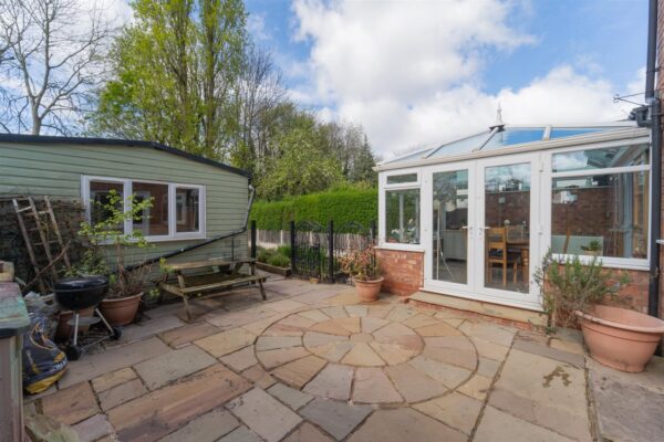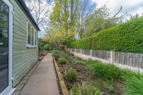 To the front aspect there is a low-level brick boundary wall, pedestrian iron gates and a paved driveway providing off road parking. To the side aspect there is a carport and an iron gate providing access into the rear garden. To the rear aspect there is a patio paved with Indian stone ideal for outdoor dining. There is a detached office/ storage space with power and light, beyond this there are raised flower beds stocked with mature trees and shrubs. The garden is enclosed with timber fencing and hedgerow to the neighbouring properties.