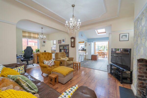 The accommodation comprises of a porch, decretive tiled hallway, lounge with a stained-glass bay window to the front aspect, a good-sized family room with picture rails and coving which leads to the extended kitchen/ dining room. A conservatory can also be found leading off the kitchen/ diner with double door leading out into the rear enclosed garden.