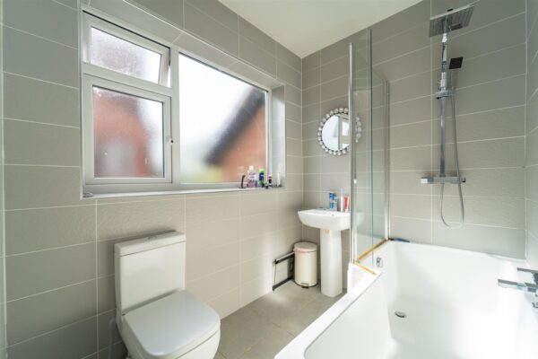 To the first floor there are four well-proportioned bedrooms one benefitting from built in wardrobes. A modern white three-piece bathroom.
