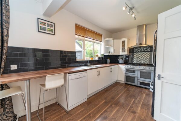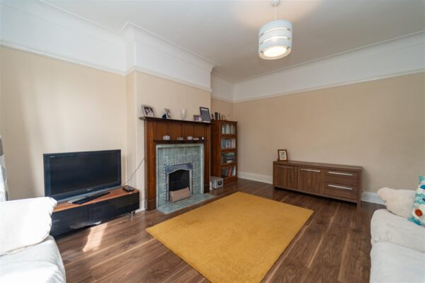 This well-planned family property comprises; entrance hallway, a downstairs W.C, to the front aspect a good-sized lounge with bay window, original fireplace, cornicing and picture rail detailing, an open plan kitchen dining room with access through French doors leading into the lawned garden with patio space perfect for outdoor dining and a useful multi purpose brick-built garage.