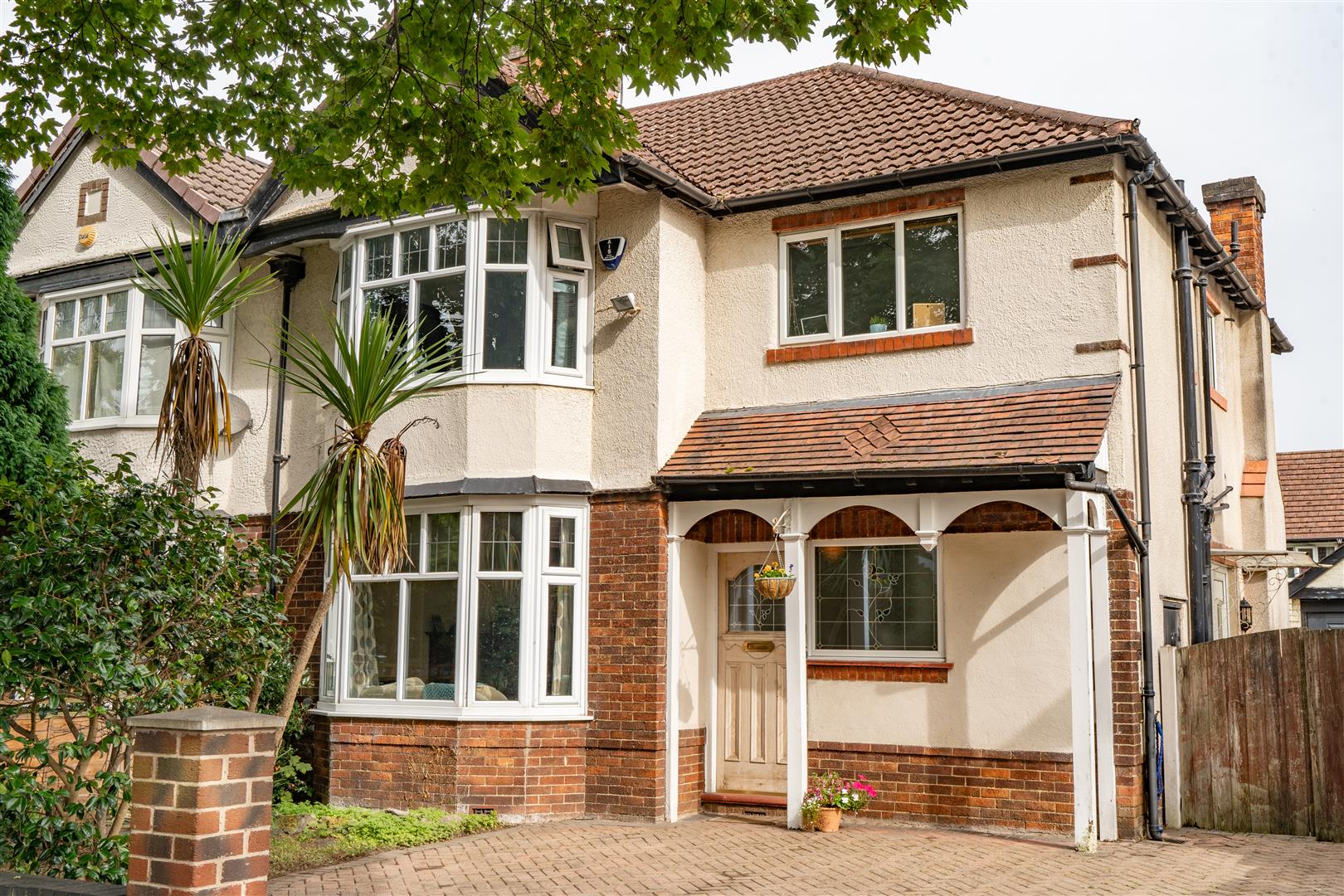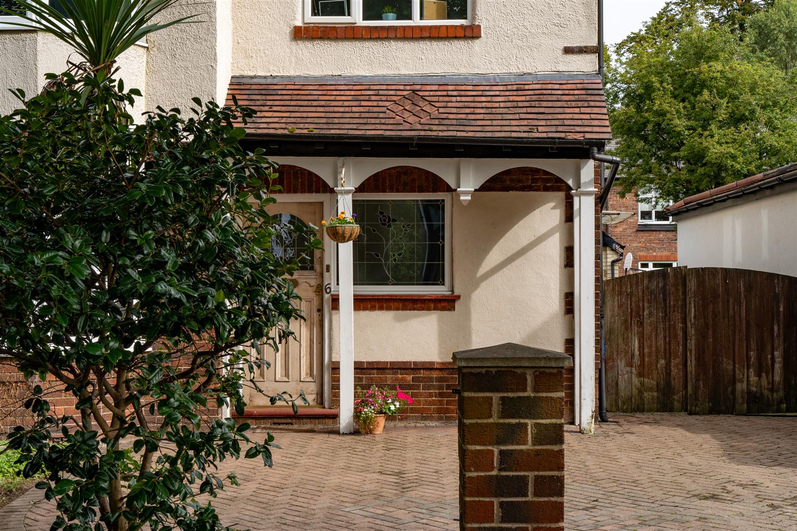 To the front of the property there is a low-level brick boundary wall, mature trees and a paved drive way for multiple cars, a gate to the side of the property giving access to the rear garden with patio and lawned area. A multi-purpose brick-built garage.