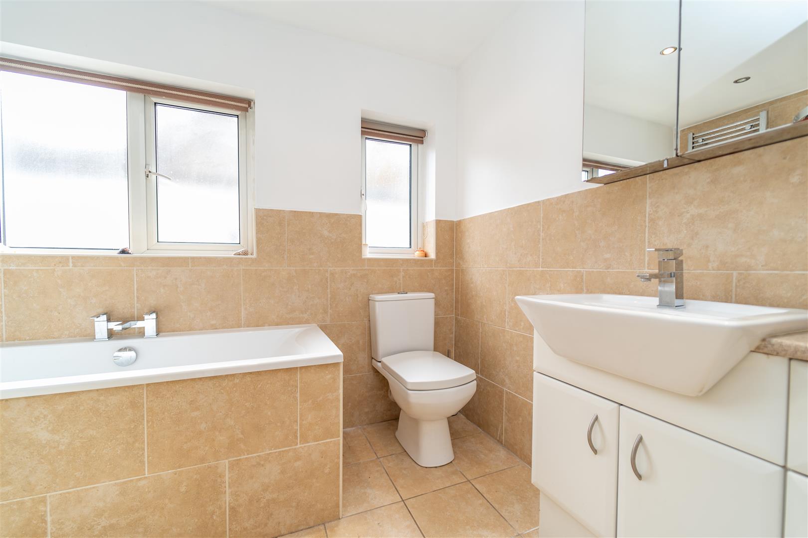 To the first floor there is a landing leading to Three good sized bedrooms, the master bedroom with bay window allowing plenty of natural light, the second bedroom benefiting from built in wardrobes, and a further third bedroom with a four-piece family bathroom also on this floor.