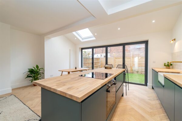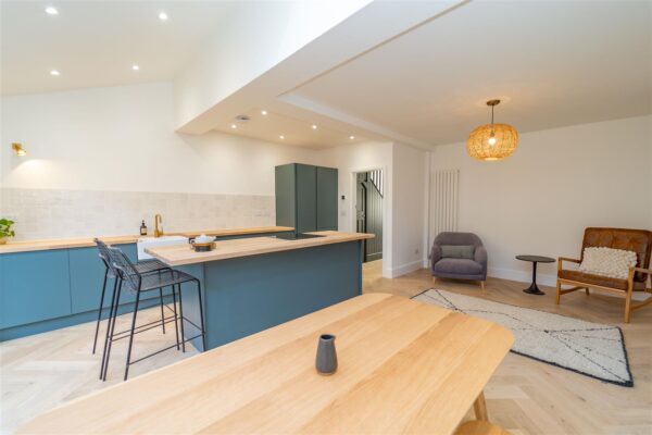 This well-planned accommodation comprises of; A porch leading to an entrance hallway, bay fronted modern lounge to the front aspect and an open plan kitchen, snug and dining area to the rear with anthracite aluminium bi-folding doors leading to the garden. This impressive kitchen includes features such as kitchen units decorated in Farrow and Ball Inchyra Blue, Lussostone kitchen tap, nkuku pendant and Pooky wall lights. The ground floor benefits from stunning parquet flooring throughout.