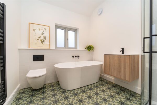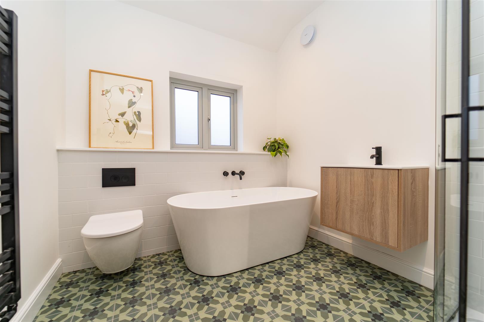Whilst to the first floor there are three well-proportioned double bedrooms and a modern and tastefully decorated four-piece bathroom with Mandarin Stone tiled flooring.