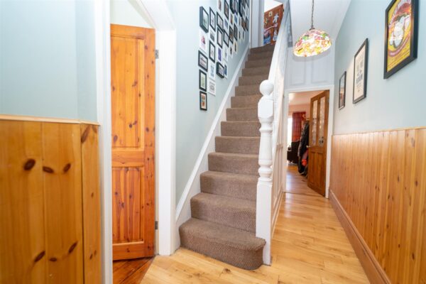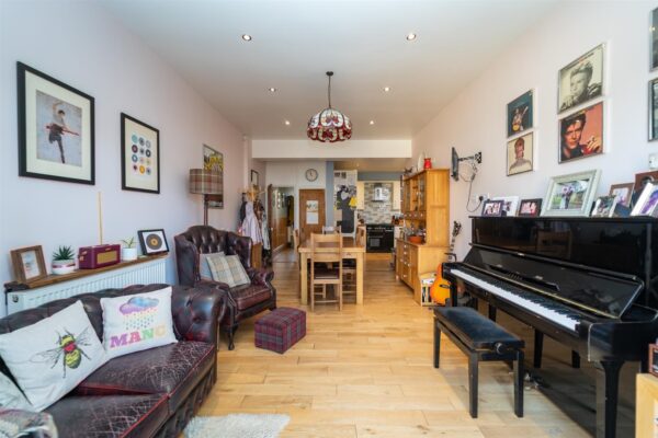 This well-planned home has been tastefully updated throughout and the accommodation consists; an entrance hallway with a wooden door with stained and leaded glazing, a lounge to the front aspect with a stunning marble fireplace and tiled hearth and an open plan dining/family room with bi-folding double-glazed doors leading out into the rear enclosed garden and a modern fitted kitchen with solid oak worktops and wooden flooring completes the ground floor.