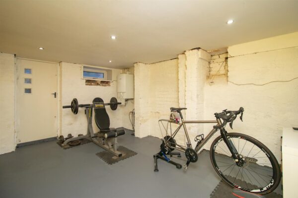 The basement offers a large useful space, currently being used as a laundry room, a shower room, a gym and storage.