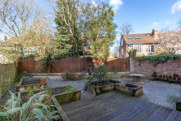 To the front of the property there is an enclosed garden, surrounded by a low-level brick boundary wall and mature hedgerow. Mature trees and shrubs border a concrete driveway, providing off-road parking for multiple vehicles. Gated access leading down the side of the property, through to the rear. To the rear of the property there’s a landscaped courtyard style garden, enclosed with a brick boundary wall and timber fencing. Decorative gravel with a variety of raised sleeper flower bed. A raised decked patio terrace ideal for a table and chairs.