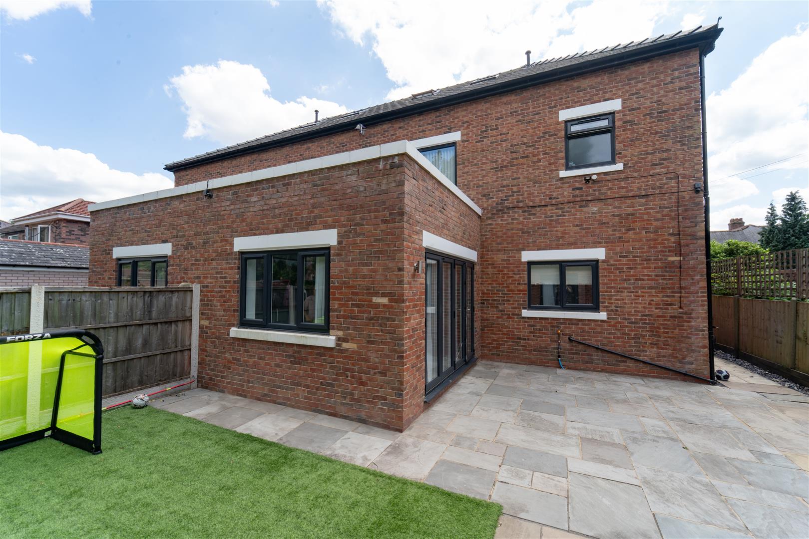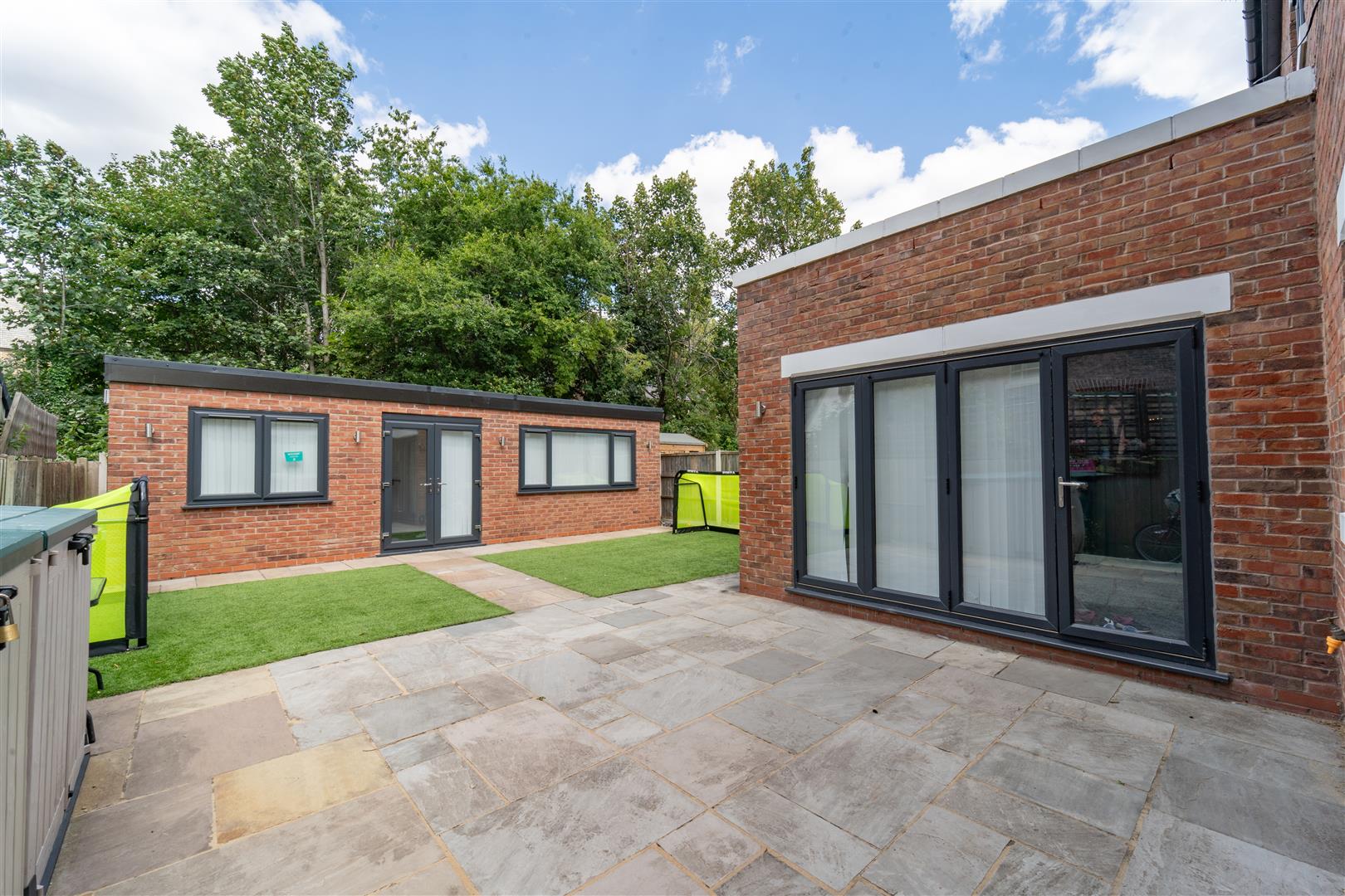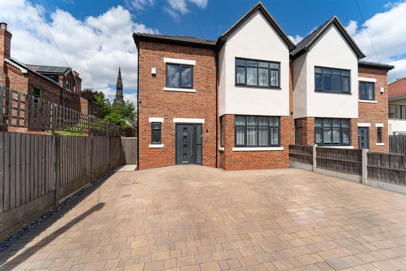 To the front aspect there is a low-level brick boundary wall. Timber panelled fencing with the neighbouring properties. Decorative wall inset LED lights. A block paved driveway providing ample off-road parking for a number of cars. To the side there is a timber gate, leading to the rear aspect. The rear of the property is enclosed by timber panelled fencing with the neighbouring properties. A good-sized paved patio area finished with Indian stone, A useful brick built outhouse providing ample storage or office space.