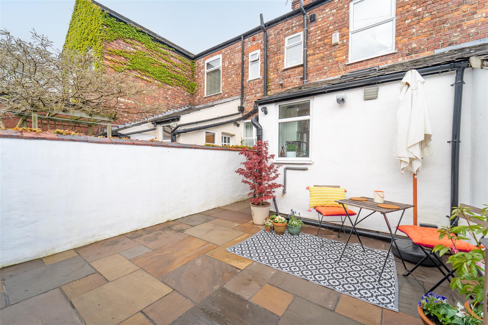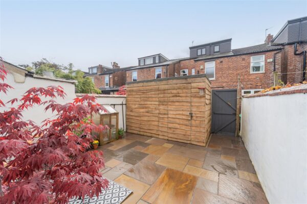 The front of the property has recently been repointed. There is a low-level brick boundary wall with decorative railings, a pedestrian iron gate and a paved pathway leading to the door. To the rear aspect the south facing Indian Sandstone courtyard is enclosed by a brick-built wall to the rear and neighbouring properties. Ideal for a table and chairs and has a useful concrete storage shed with it's own power supply.