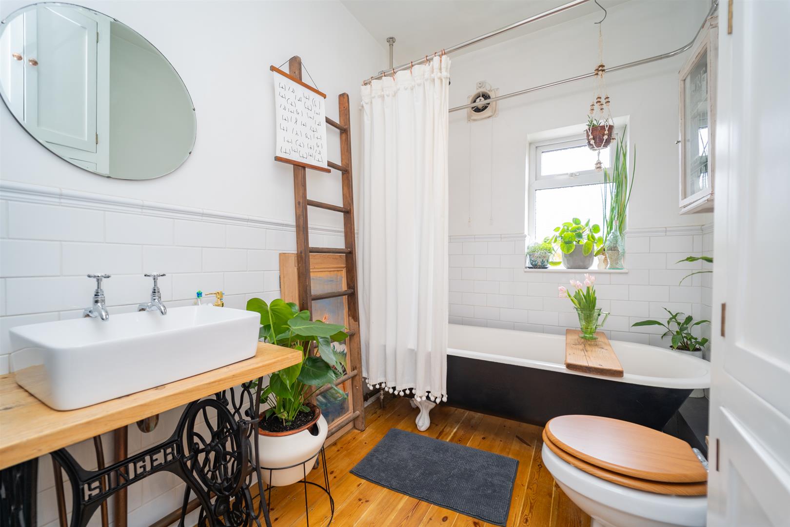 To the first floor there is a landing leading to two double bedrooms and a three piece bathroom with newly installed features in keeping with the cast iron bath.
