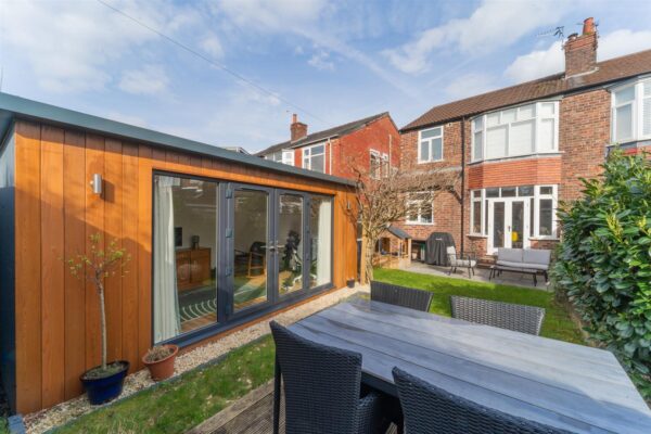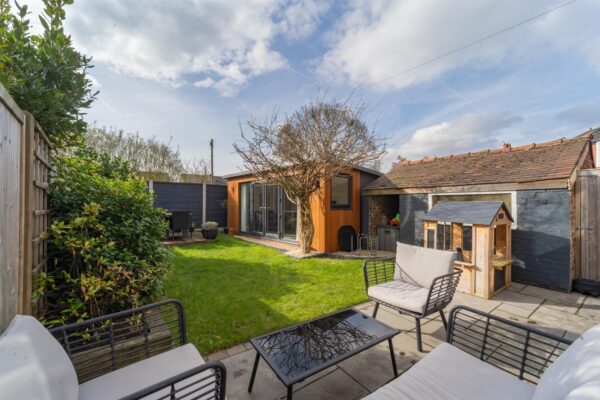 To the front aspect there is mature hedge row and timber fencing creating privacy, a paved front garden and raised bed featuring Japanese maple trees. There is access to the side of the property into the rear garden. To the rear aspect there is a patio, lawned garden and decked area, along with a brick-built shed. A useful detached office pod offers flexible work or leisure space, with its own power, electric heating and ethernet point.