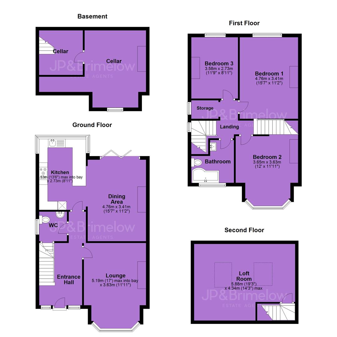 To the first floor there is a landing leading to three good sized double bedrooms and a three-piece bathroom suite. Stairs lead to the second floor where a sizeable double bedroom can be found.