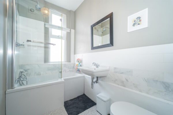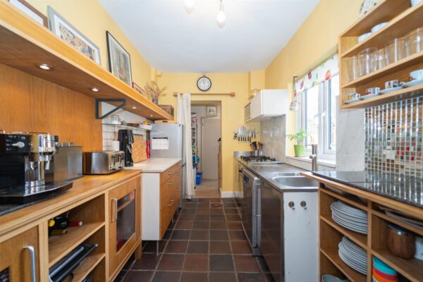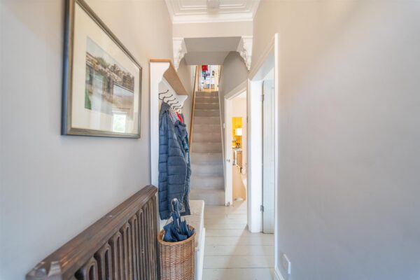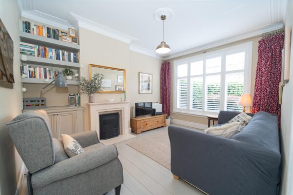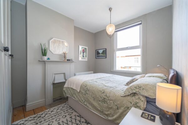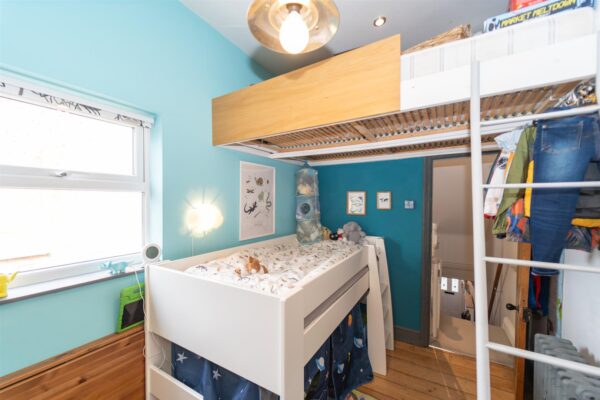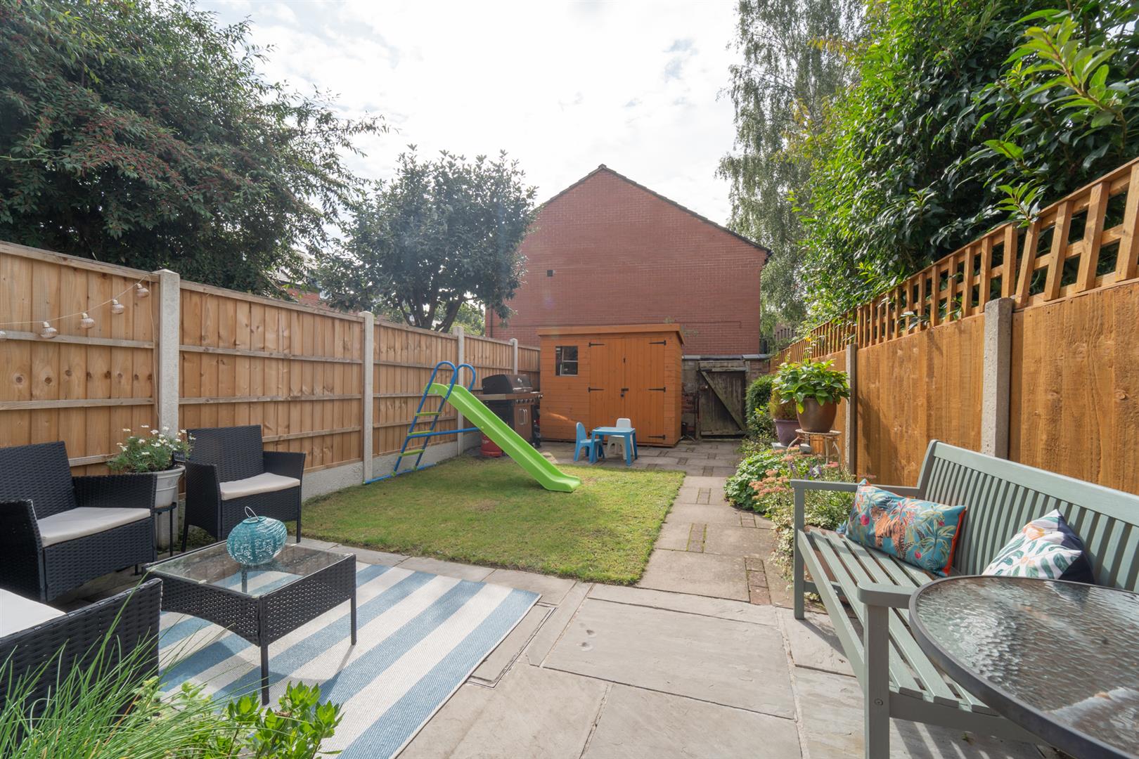 To the front of the property lies a paved garden with a low-level brick boundary wall and bamboo hedging, a step leads up to the front door. To the rear aspect there is a good-sized private garden with patio area providing ample space for garden furniture and a lawn with planted shrub border. The garden is enclosed by timber panelled fencing and has an access gate leading to the communal alley way behind.