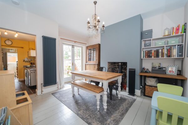 This spacious Family home is well proportioned throughout and comprises; entrance hallway leading through to a living room with feature fire place, ceiling coving and built in storage, dining room with fireplace, under stair storage and French doors leading onto the rear garden, a good-sized kitchen leading through to a useful storage area and downstairs W/C.