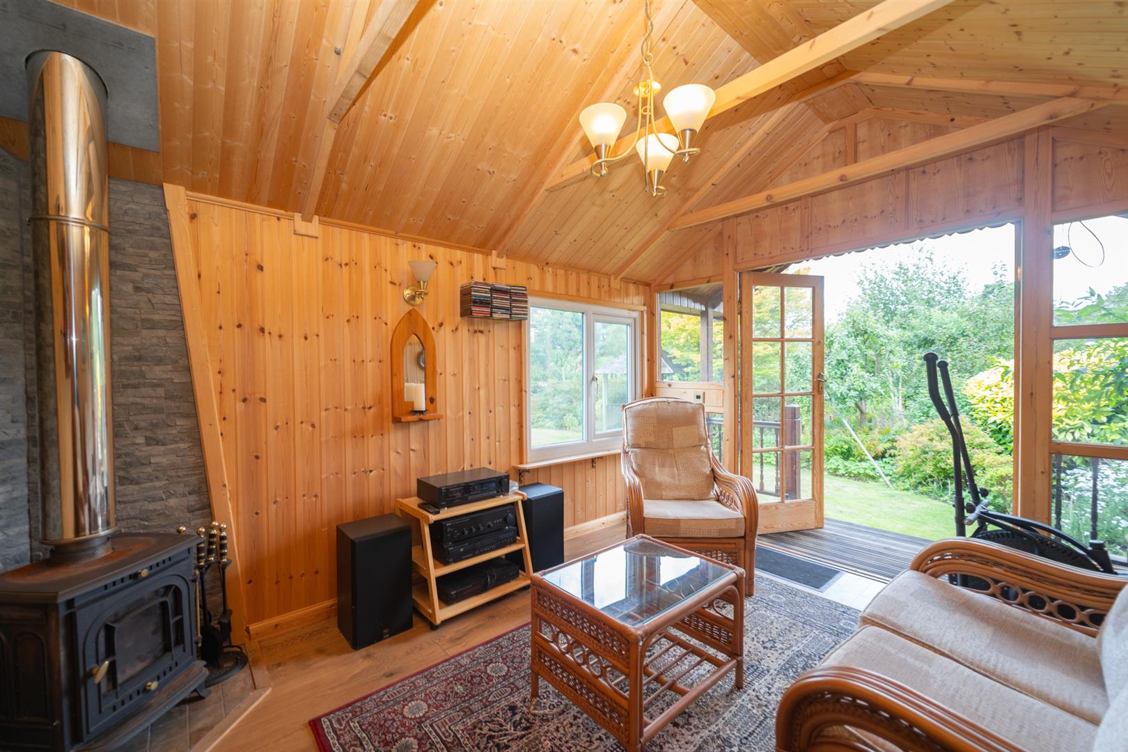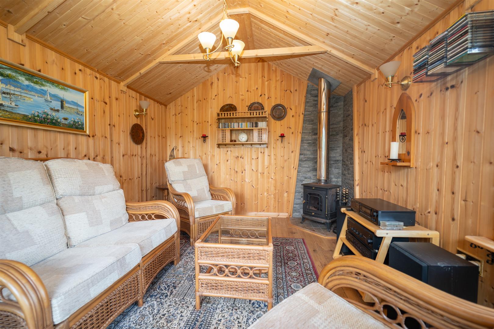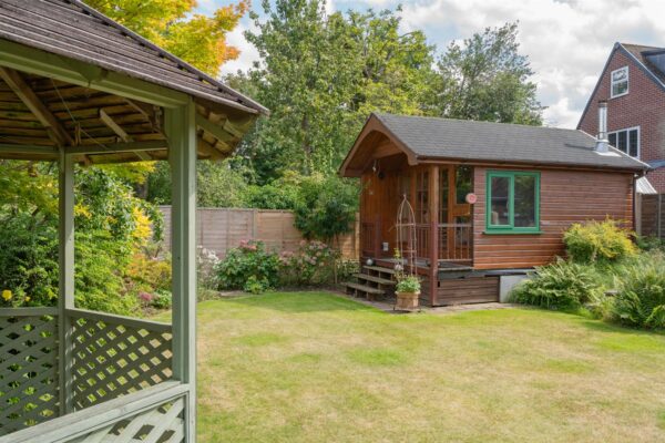To the front of the property there is a low-maintenance garden. A good-sized paved driveway, provides off-road parking for multiple vehicles, enclosed with a low-level brick boundary wall and raised and planted flower beds with an array of trees and shrubs. A timber gate leads through to a stunning lawned rear garden. The garden is bordered by an extensive variety of established plants, trees and shrubs. An attractive detached summer house offers flexible multi use space, complete with wood burning stove, lighting and electrical points.
