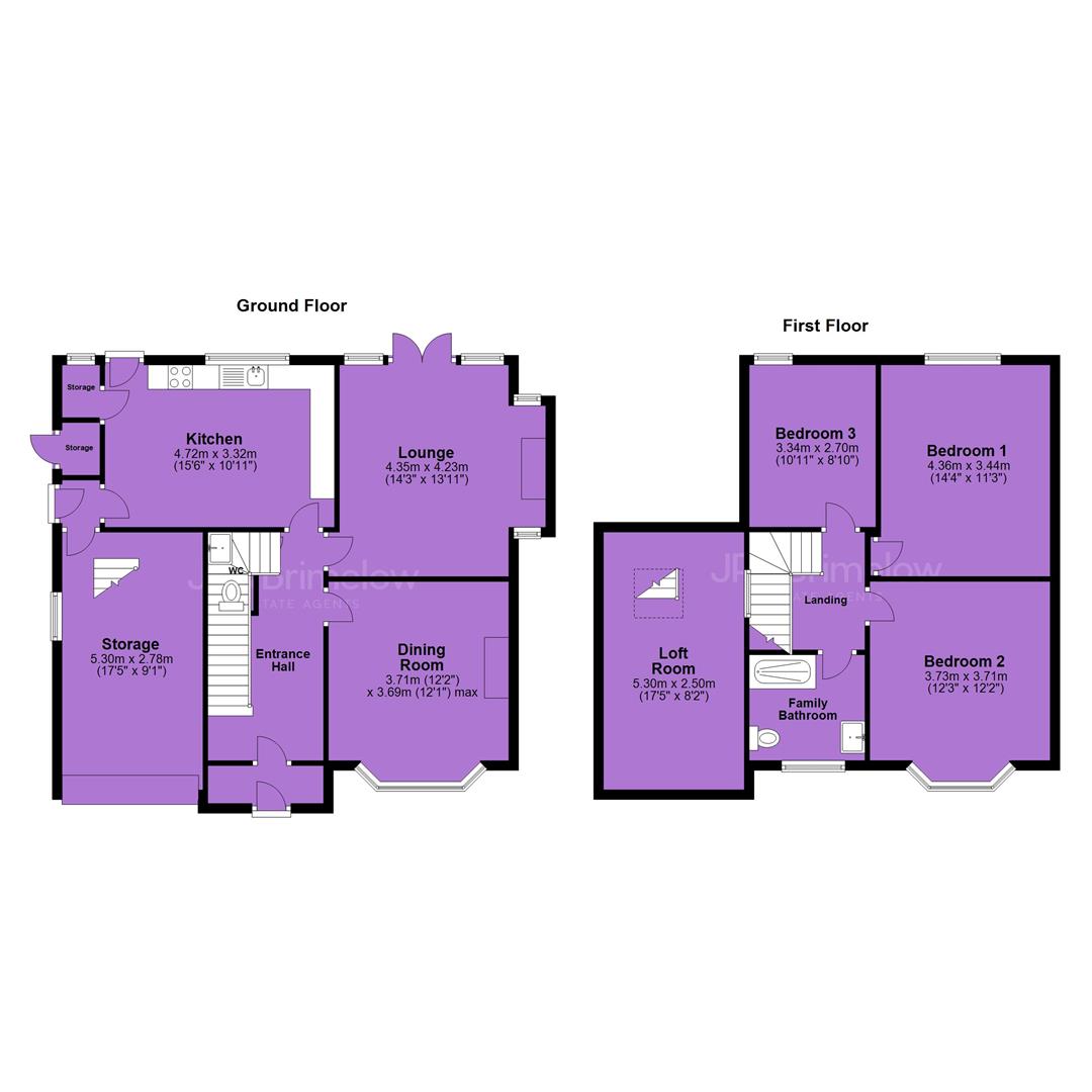 The first floor offers a landing leading to three double bedrooms, a three-piece family bathroom and a separate W.C.