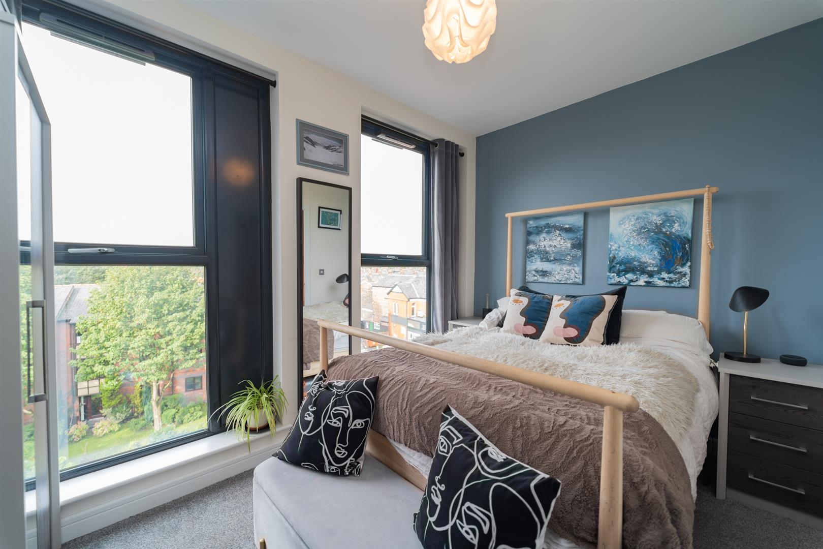 **VIDEO TOUR AVAILABLE** A stylish & beautifully presented TWO DOUBLE BEDROOM APARTMENT positioned on the TOP FLOOR to the front aspect of this attractive modern development known as Chorlton Plaza. Located in the centre of Chorlton with its independent shops, restaurants and bars. All aspects of living in this energetic location have been considered, from the peace and tranquillity of nearby large open green spaces to the lively night-life of the thriving food and drink scene. Apartment 20 is one of the larger style two bedroom top floor properties within the development with a preferred corner position and dual aspect to both front and rear of the block. The accommodation comprises; a communal entrance hallway with a lift and stairs to all floors, a private entrance into the lounge/dining area, a fitted kitchen, two double bedrooms, master benefitting from a three-piece en-suite shower room and a further three-piece shower room. The apartment benefits from a camera intercom system, 1 x off street gated allocated off-street parking space, 4 x Solar panels on the roof, warmed by electric heating and additional storage cupboard completes this fantastic apartment.