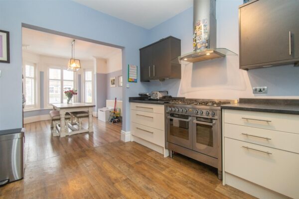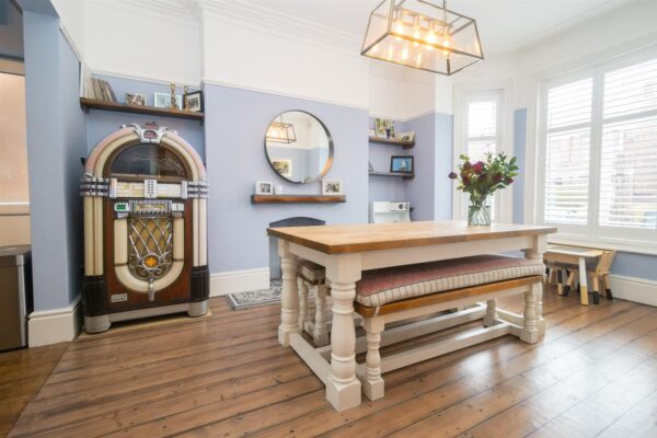The well-planned and spacious accommodation comprises; porch, entrance hallway, a dining room with a bay window to the front aspect opening into the fitted kitchen, a downstairs three-piece shower room and lounge to the rear with gas-stove and access into the rear enclosed South facing lawned garden. To the first floor there is a landing leading to three well-proportioned double bedrooms and a recently fitted high-spec three-piece family bathroom.