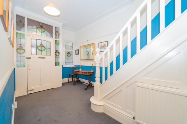 The property retains a host of original features such as high ceilings, coving, stained glass windows and is warmed by gas fired central heating. Useful chamber cellars providing ample storage with access out into the large rear enclosed lawned garden.
