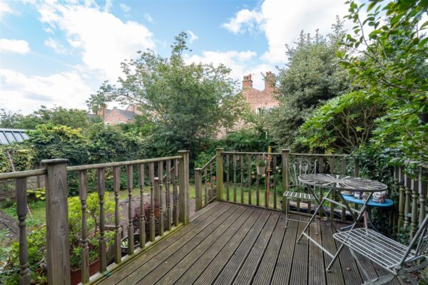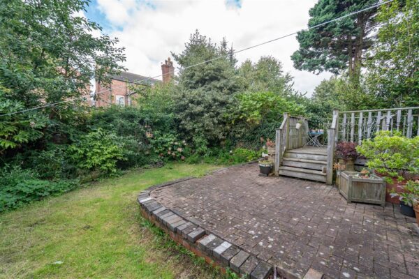 A low-level brick boundary wall to the front aspect with well planted flowerbeds and a footpath leading to the front door. To the side aspect there is a timber gate leading to the rear of the property. The rear garden is an enclosed garden mainly laid with lawn, paved patio area and raised decking and boarded by mature trees.