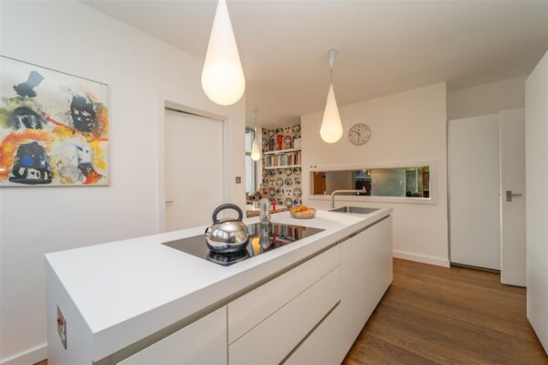The well-designed layout includes an entrance porch leading through to a large inner hallway, a downstairs W.C., along with a useful storage cupboard. To the front aspect a contemporary Bulthaup kitchen/ breakfast room with separate utility room with access out into the garden.