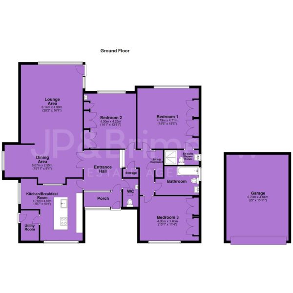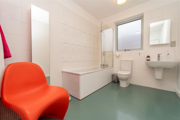 You’ll find three good sized double bedrooms all benefitting from built in wardrobes, and one an en-suit three-piece shower room. Additionally, a Three-piece bathroom completes this modern mid-century home.