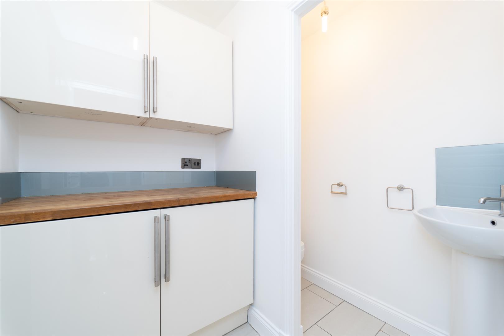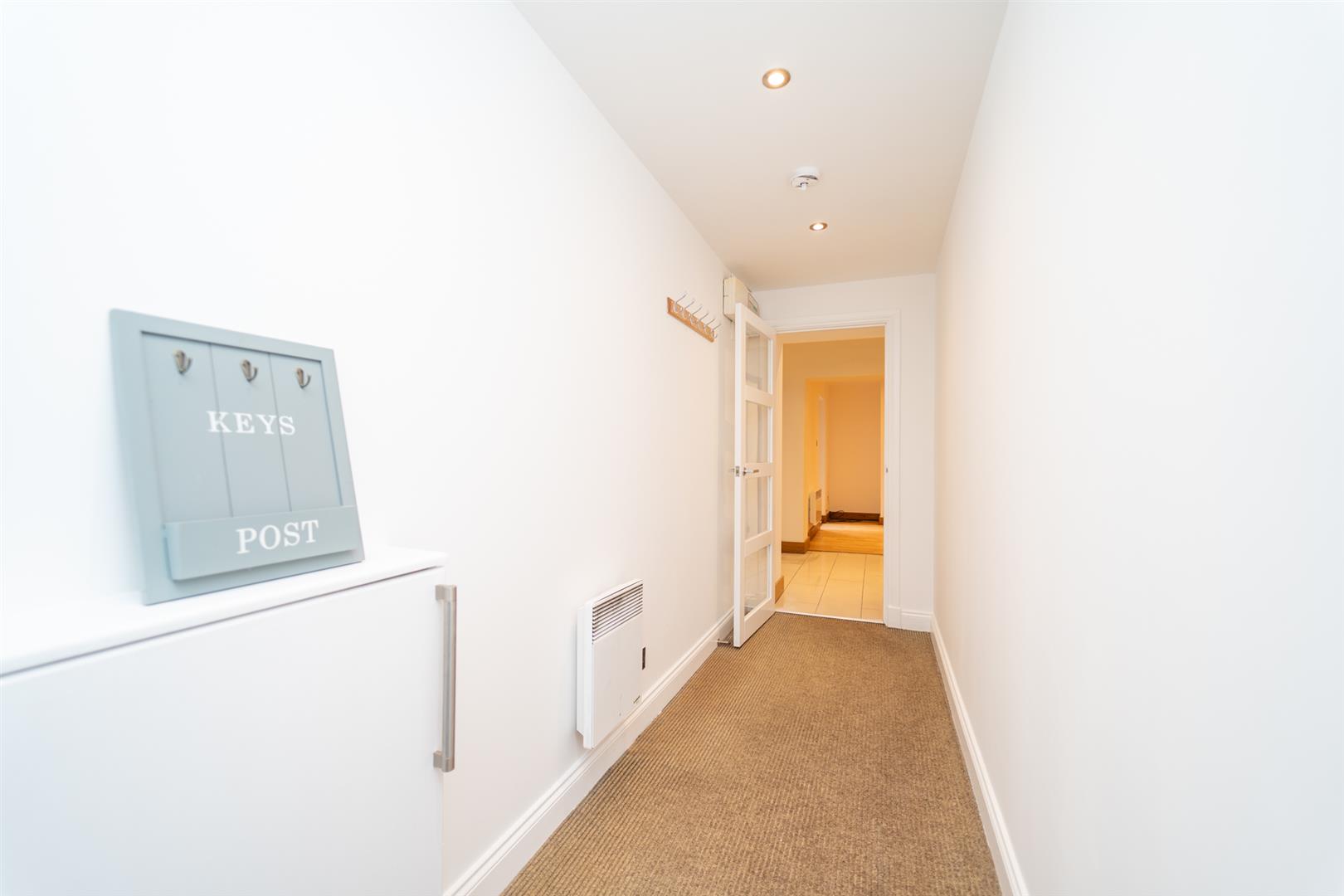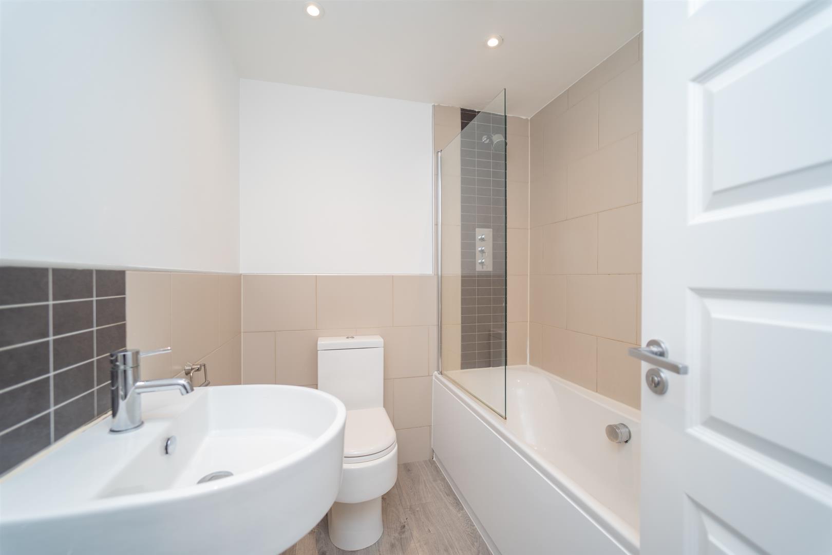To the front aspect there are well established communal gardens with mature shrubs and trees. Mainly lawned with a block paved driveway leading to allocated off road parking spaces. A paved path leading to the front door and to the rear enclosed communal lawned garden. Recycling bin area to the rear aspect.