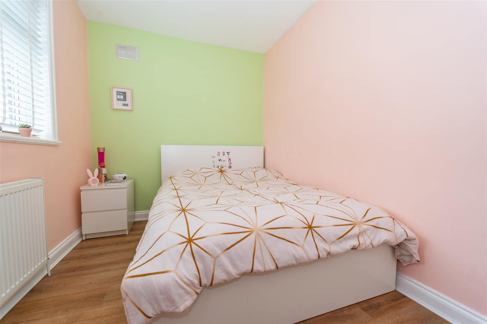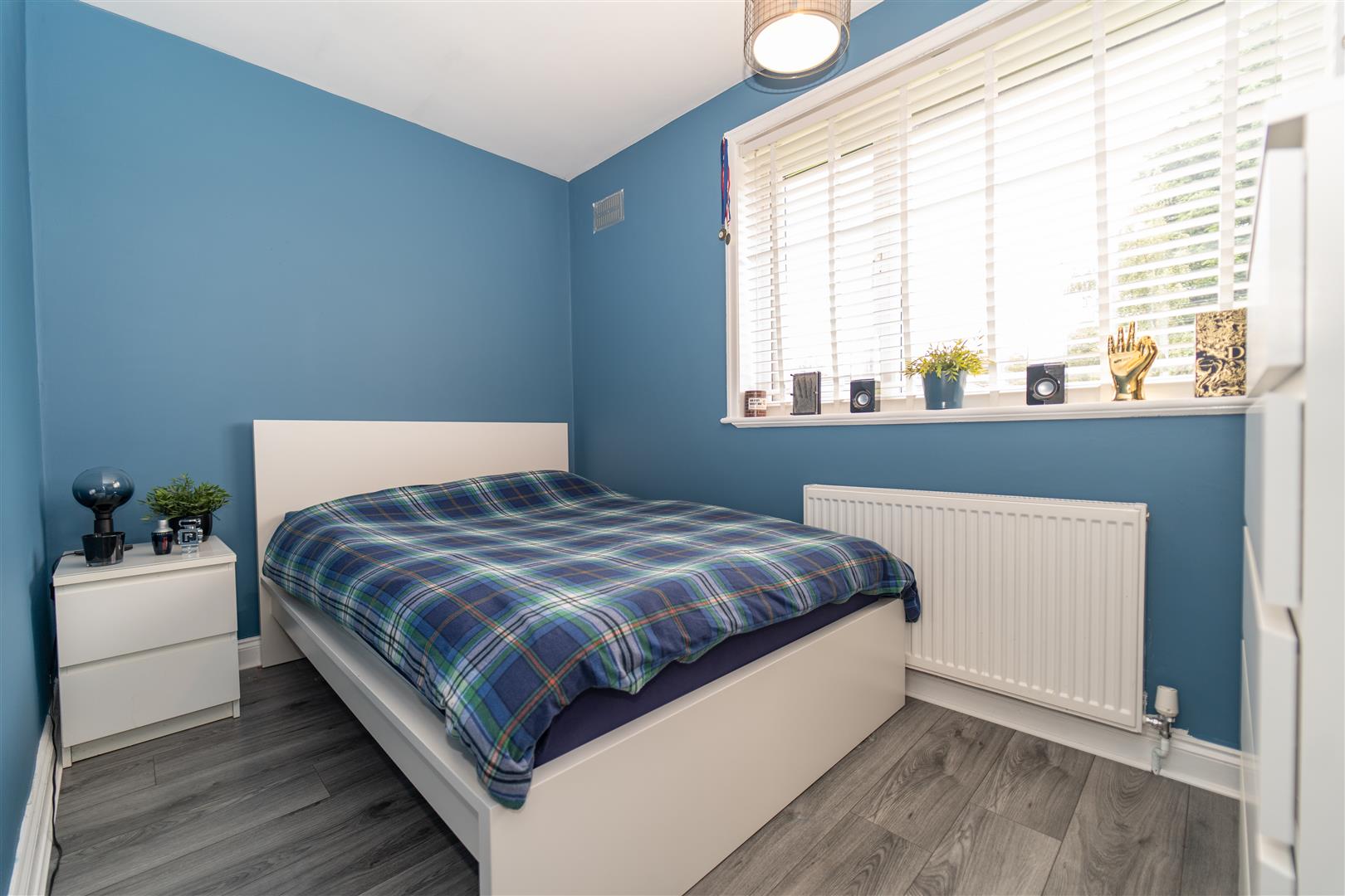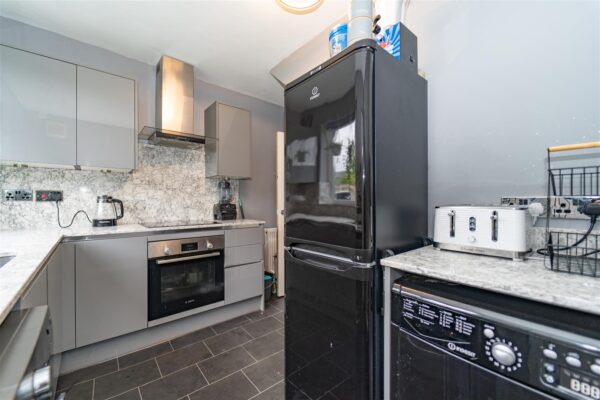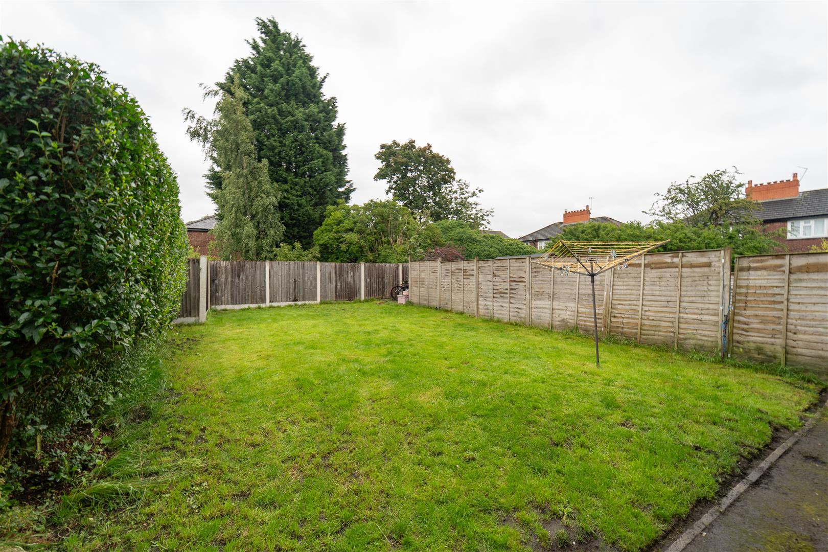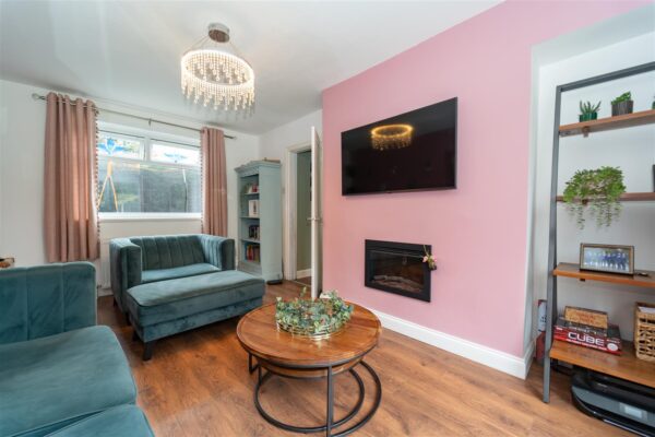 To the front of the property, there is a driveway providing an off-road parking space and small lawned garden area, privacy is offered by a mature hedge. A gate leads to the rear where a large lawned garden can be found with timber fenced and hedged border.