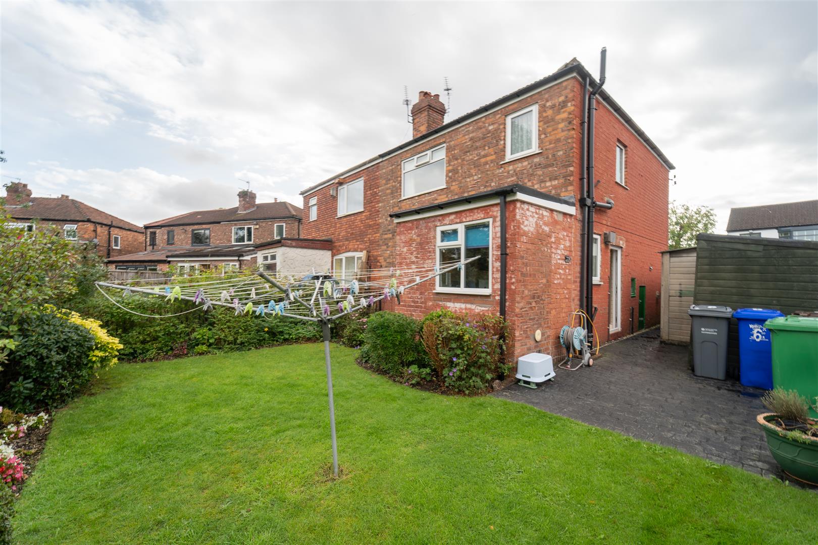 To the front aspect there is a low-level brick boundary wall and mature hedgerow with the neighbouring properties. A brick paved driveway, providing off road parking for multiple vehicles. Raised and planted flower beds with a variety of shrubs. To the side aspect there is a useful garage and a timber panelled gate leading through to the rear enclosed garden. To the rear aspect there is a landscaped garden, mainly lawned with well stocked flower beds bordering the lawn with a variety of flowers and shrubs. A paved patio area, ideal for a table and chairs. Useful storage shed. Timber fencing with neighbouring properties.