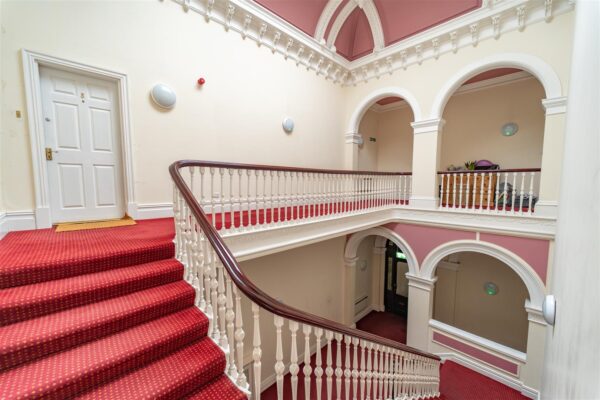 Holly Royde House is accessed via a driveway leading from Palatine Road. Boasting fantastic privacy, the building is screened by mature trees and beautifully maintained communal gardens. A car park to the front of the building offers an allocated space for Apartment 2. Steps rise to the stunning original entrance porch and hallway.