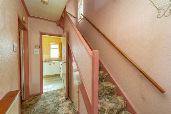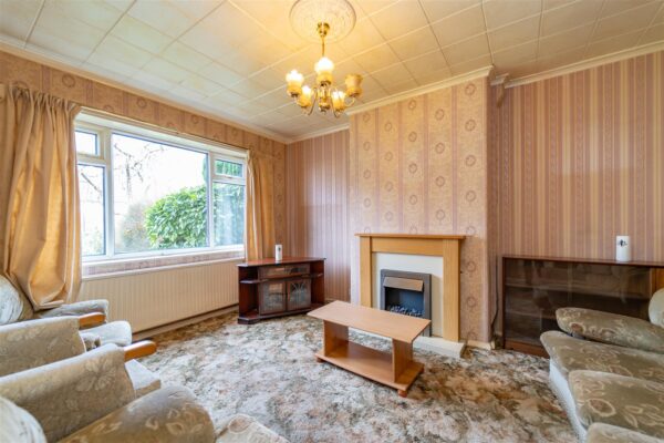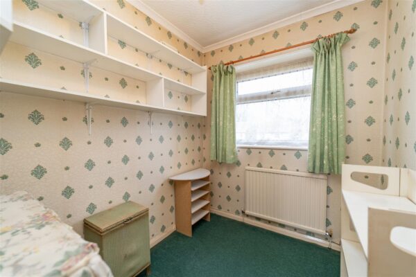 The property is entered through a lawned front garden with a useful driveway leading to a garage, providing off-road parking. Enclosed with mature hedgerow. To the rear of the property there is an enclosed lawned garden with paved paths and gravelled decorative flower beds. A paved patio, ideal for a table and chairs.