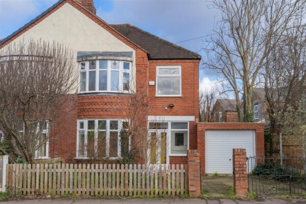 ***VIDEO TOUR AVAILABLE*** A charming bay-fronted THREE BEDROOM semi-detached property situated on a well-regarded residential road in Chorlton, just off Manchester Road. Within walking distance and in close proximity to Chorlton centre, this property offers convenient access to local amenities and reputable primary schools situated on Oswald Road. Additionally, the Metrolink station is nearby, located in Firswood on Ryebank Road or Wilbraham Road in Chorlton. The thoughtfully arranged accommodation features a porch, a welcoming entrance hall, a lounge with a bay window with views to the front, a dining room, a fitted kitchen with access out into the rear garden and a garage. Whilst to the first floor there are two double bedrooms, a two-piece bathroom, a separate W.C and a third bedroom. The property benefits from gas fired central heating, period features including picture railings, stain glass windows and fireplaces, a driveway providing off road parking to the front aspect and an enclosed rear lawned garden. OFFERED WITH NO VENDOR CHAIN.