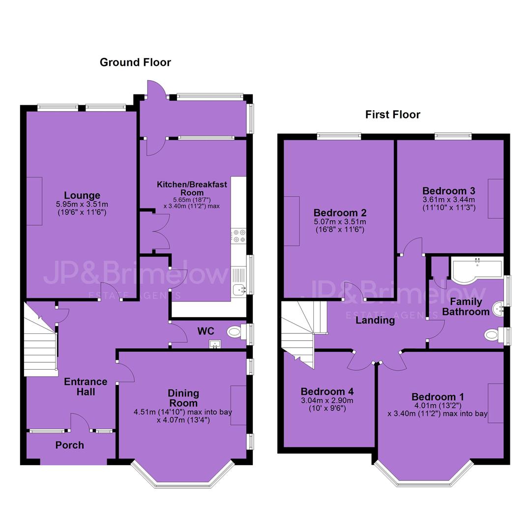 To the first floor, a landing leads to four spacious bedrooms and a white three-piece family bathroom.