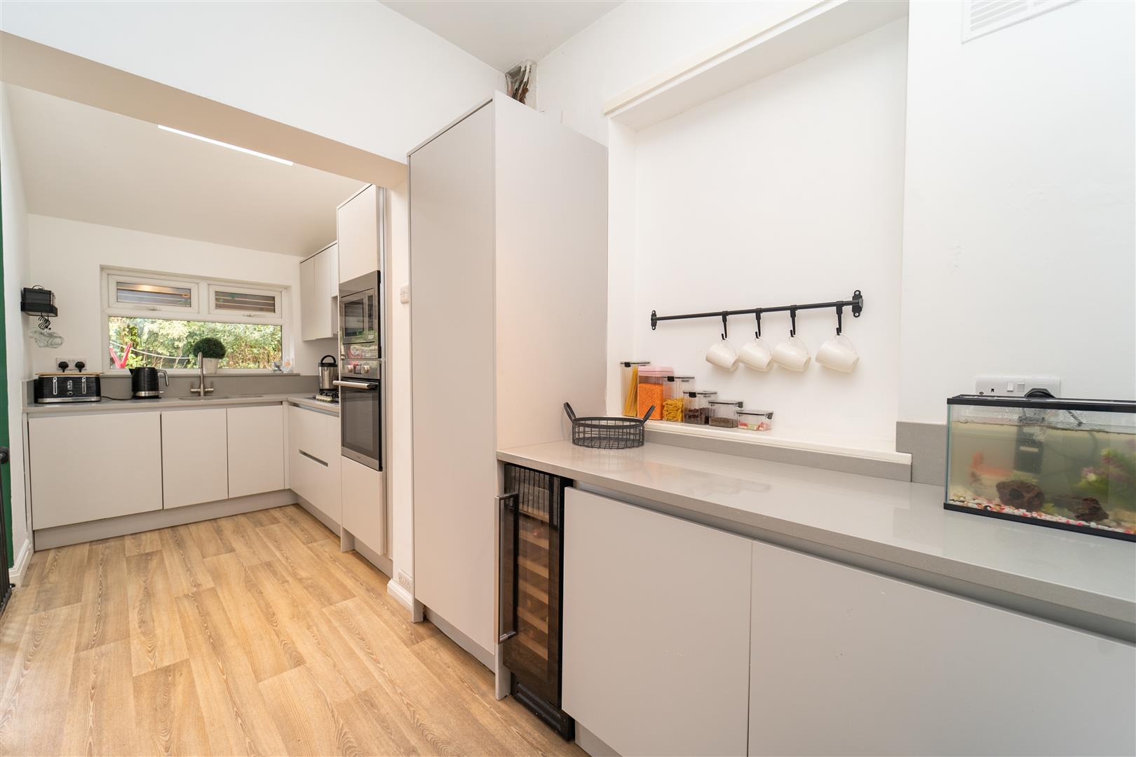 To the front of the property there is a low-level brick boundary wall, a paved drive way for 2 cars and a mature palm tree, to the rear of the property there is a low maintenance garden with artificial grass with timber fencing to neighbouring properties.