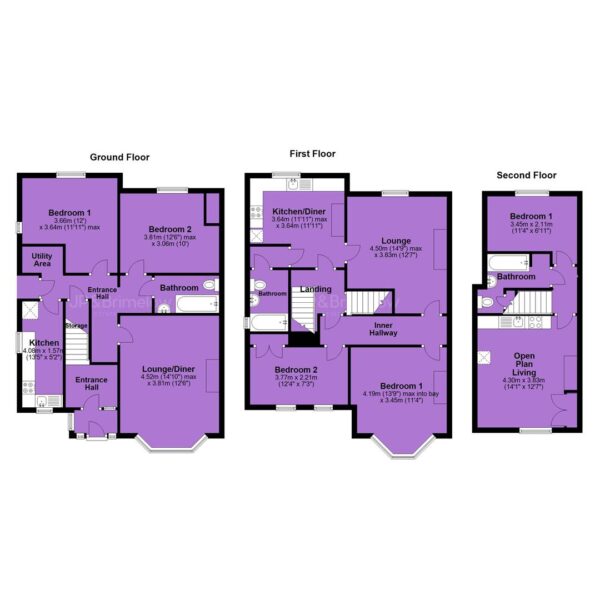 To the first floor is apartment two with its own inner hallway, two bedrooms one with bay window, lounge, kitchen/diner and three-piece bathroom. The second-floor apartment has open plan living, three-piece family bathroom and a good-sized bedroom.