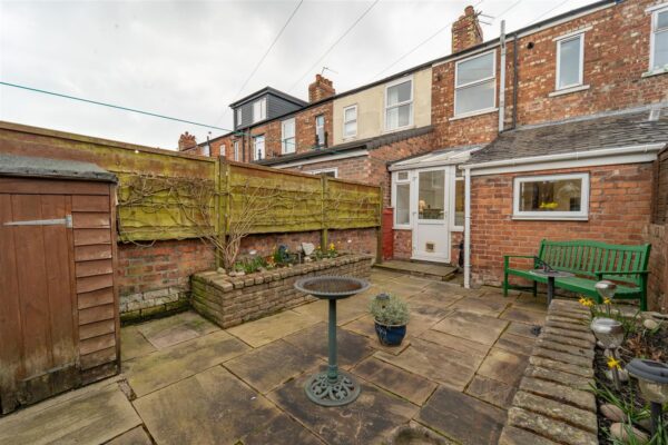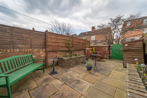 To the front aspect there is a low-level brick boundary wall and pathway leading to the front door. To the rear aspect there is a well-presented, low maintenance paved courtyard, with brick-built flower beds and a gate allowing access in to the communal alley way.