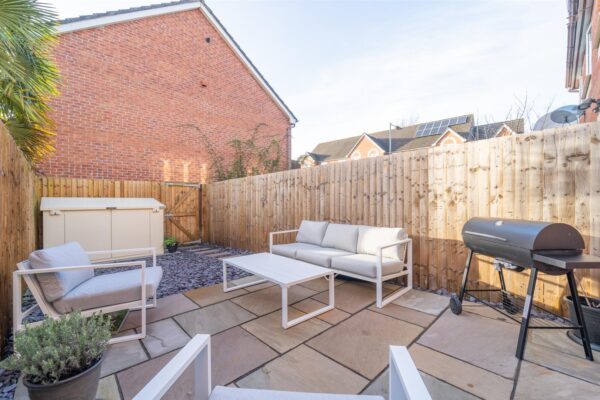 To the front aspect an inviting low-level brick boundary wall, accompanied by decorative stones and a beautifully laid paved pathway, guides you gracefully to the front door, setting a charming tone for the entrance.