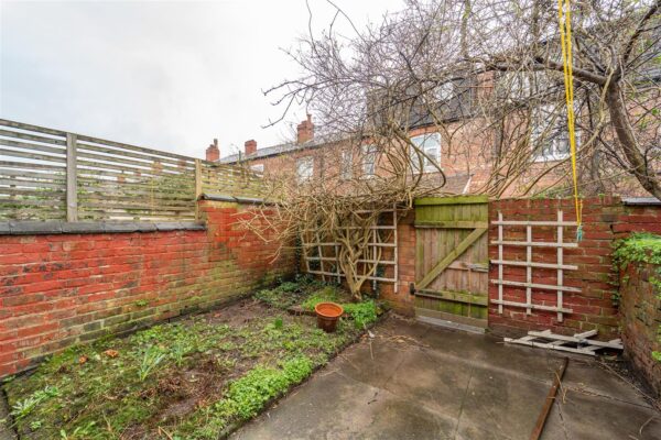 The property features a courtyard style garden enclosed with a paved patio area offering an ideal space for a table and chairs.