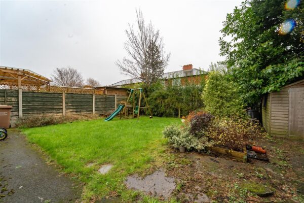 To the front aspect there is a mature hedgerow, a driveway providing off road parking, path leading to the front door and timber gates at the side aspect allowing access into the rear enclosed garden. To the rear aspect there is a good sized lawned area, patio ideal for a table and chairs, mature trees, shrubs and bushes and timber fencing to the neighbouring properties.