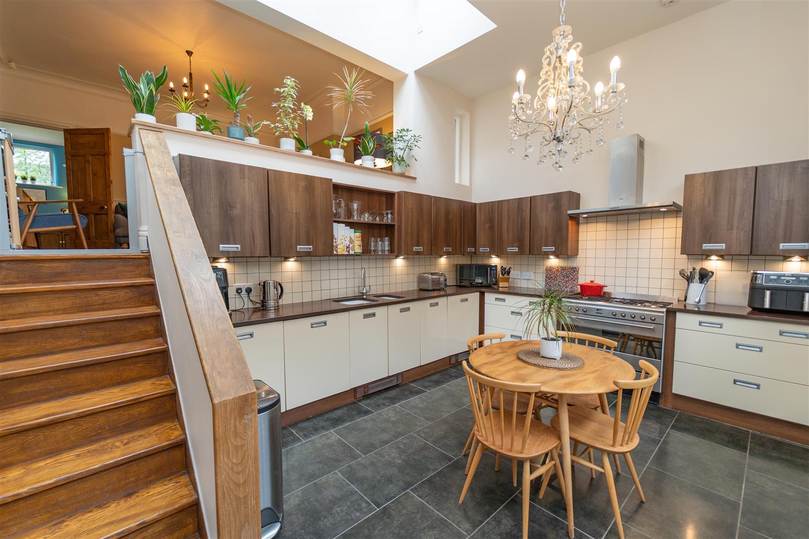 The property boasts many period features throughout. The tastefully-presented and updated property consists of: a porch, an entrance hall with access to a lounge with bay window and multi fuel stove, three-piece shower/utility room and family room with steps down to a fully-fitted kitchen/dining room. Double French doors to the rear, leading out to the terrace and tiered, enclosed rear garden, completes the ground floor.
