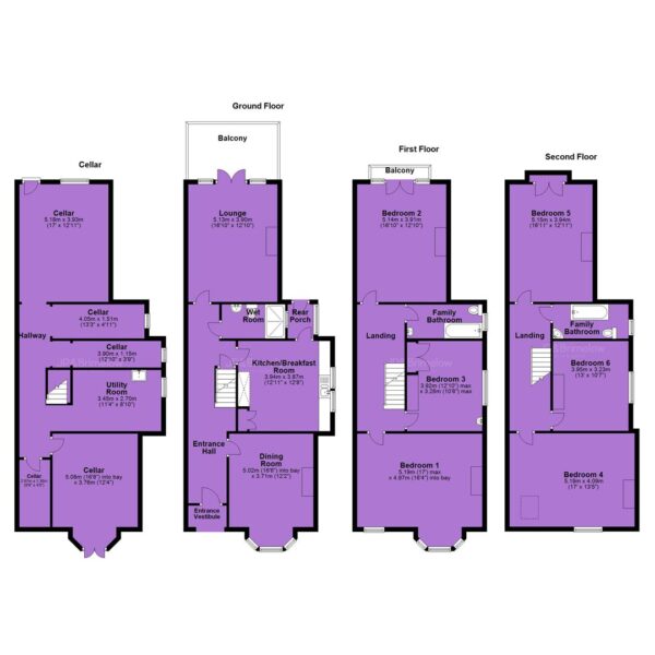 To the first floor there is landing, leading to three double bedrooms and a three-piece family bathroom. Whilst the second floor reveals a landing leading to three further double bedrooms and another three-piece bathroom suite.