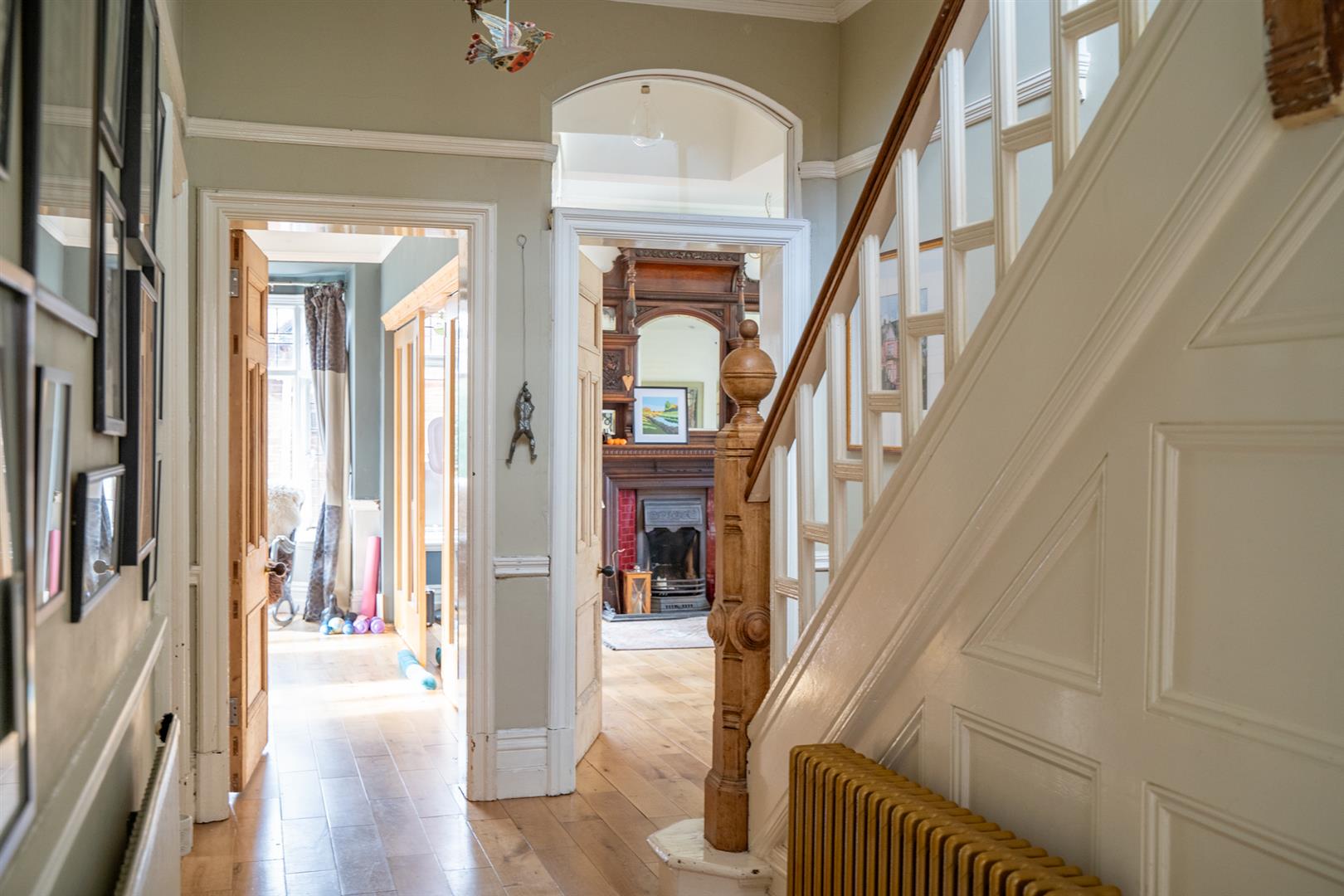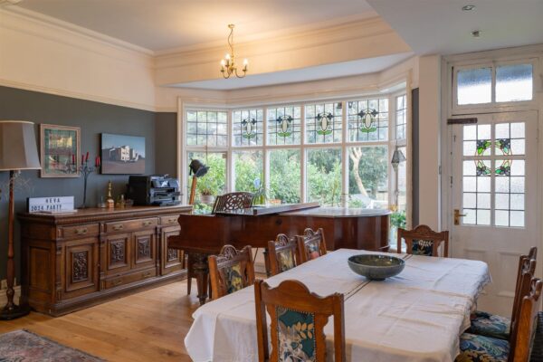 The residence boasts an abundance of original features and charming character throughout. This includes stunning fireplaces, picture railings, ceiling coving, and stained glazing, all contributing to its allure. Additionally, the property features an impressive enclosed garden.