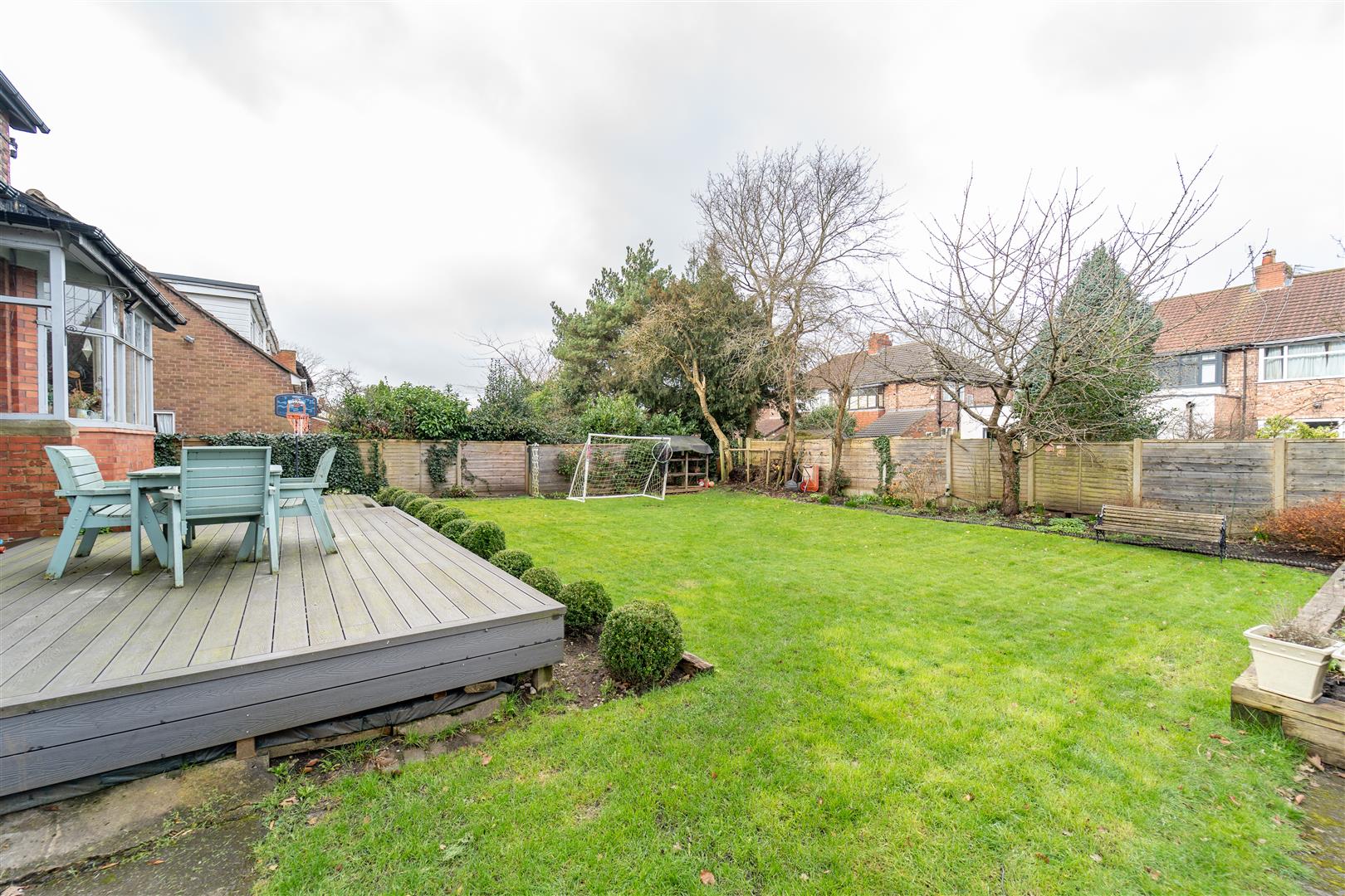 A charming low-level brick boundary wall features decorative iron pedestrian gates, inviting entry to a lawned front garden. To the rear of the property, a sizable lawned garden, enclosed by timber fencing. Flowerbeds beautifully line the lawn, additionally, a raised decked patio area offers the perfect spot for seating and relaxation.