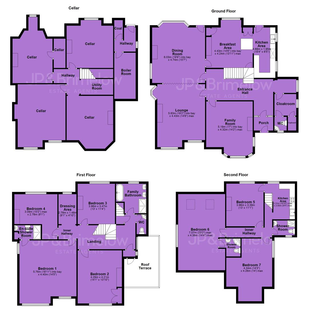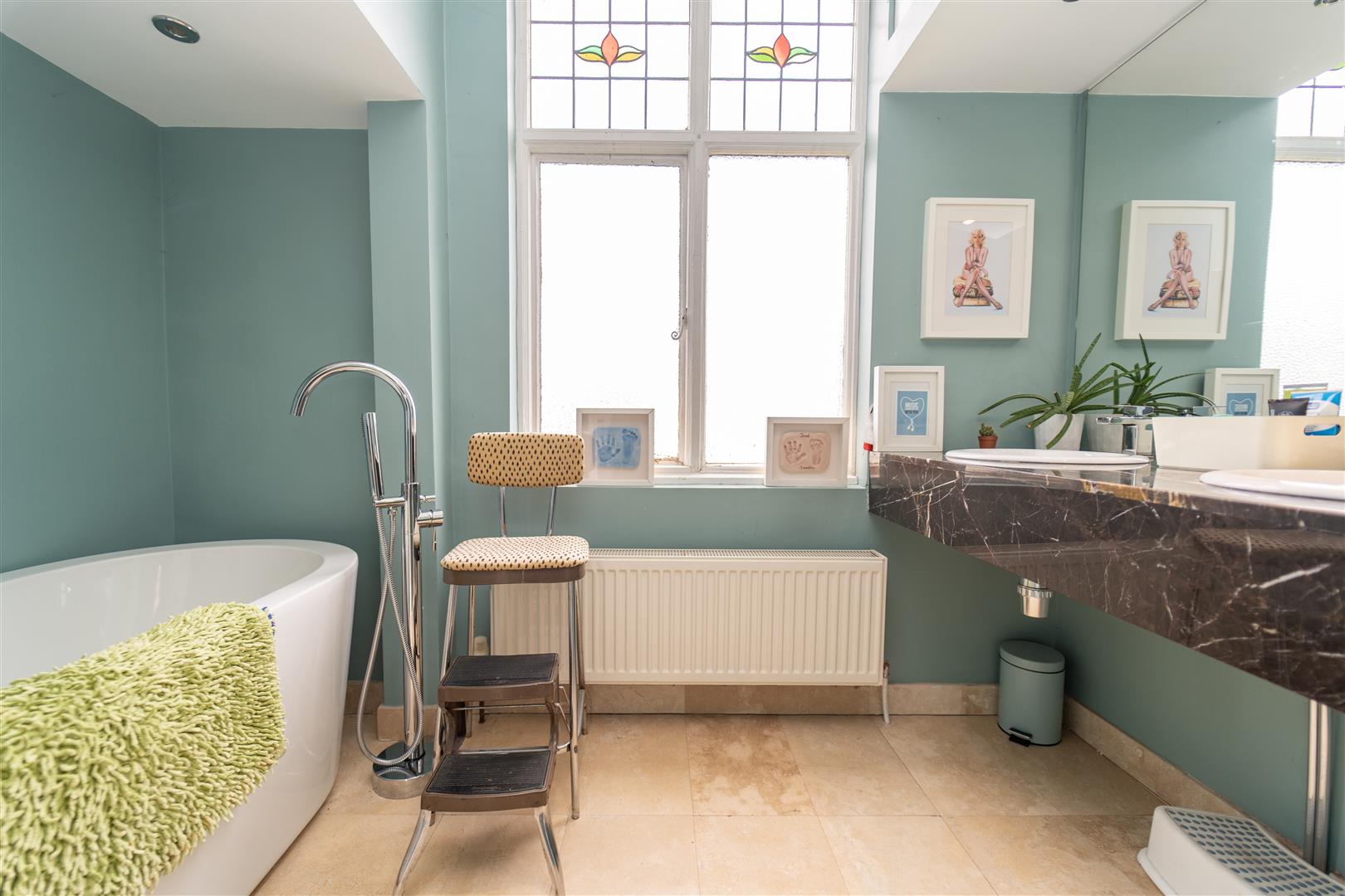 Stairs leading to the first-floor landing that provides natural light beaming through the feature window and access onto an enclosed roof terrace. Four double bedrooms and a four-piece bathroom, complete with his and hers wash basins and a separate W.C. One of the bedrooms benefits from an ensuite shower room and has a separate dressing area.