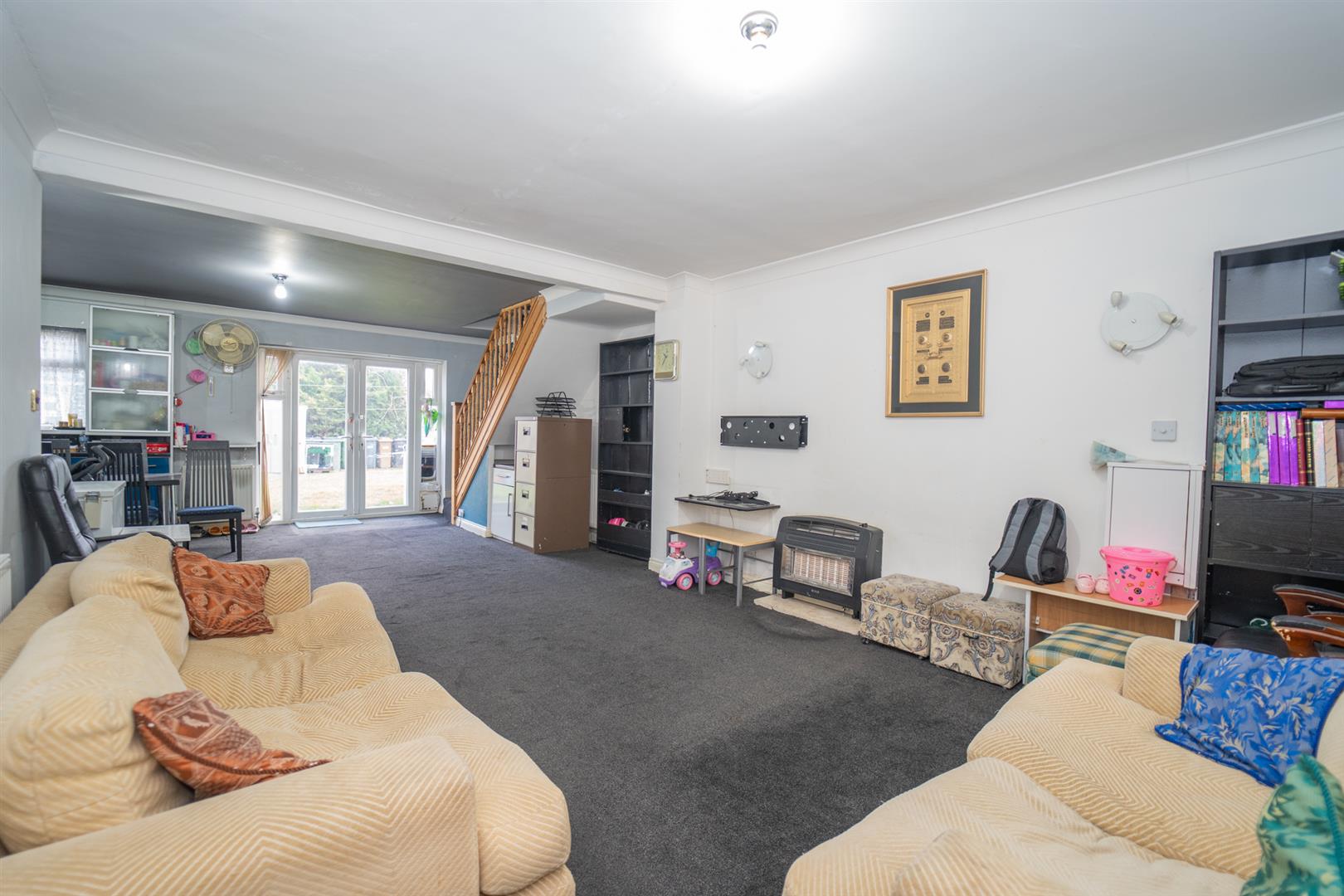 A detached brick-built building in the rear garden that could be used as a home office or self-contained accommodation with a living/kitchen/dining room, a double bedroom/office and an ensuite three-piece shower room.